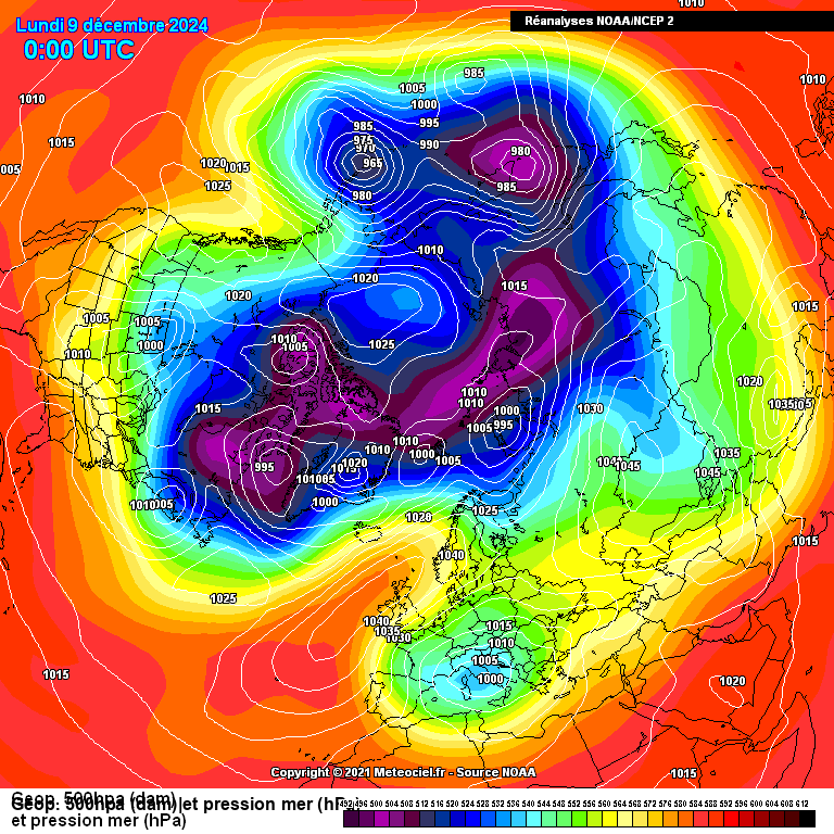 Ces cartes d'archives ont été créées à partir des réanalyses de la NCEP (Reanalysis 1, 2 et édition 20eme siècle). Elles sont de résolution 2.5°x2.5°. Du au nombre très important de cartes (plus de 300000), quelques cartes avec des erreurs peuvent être présentes. Si vous voyez un problème, vous pouvez nous le signaler. Merci.
